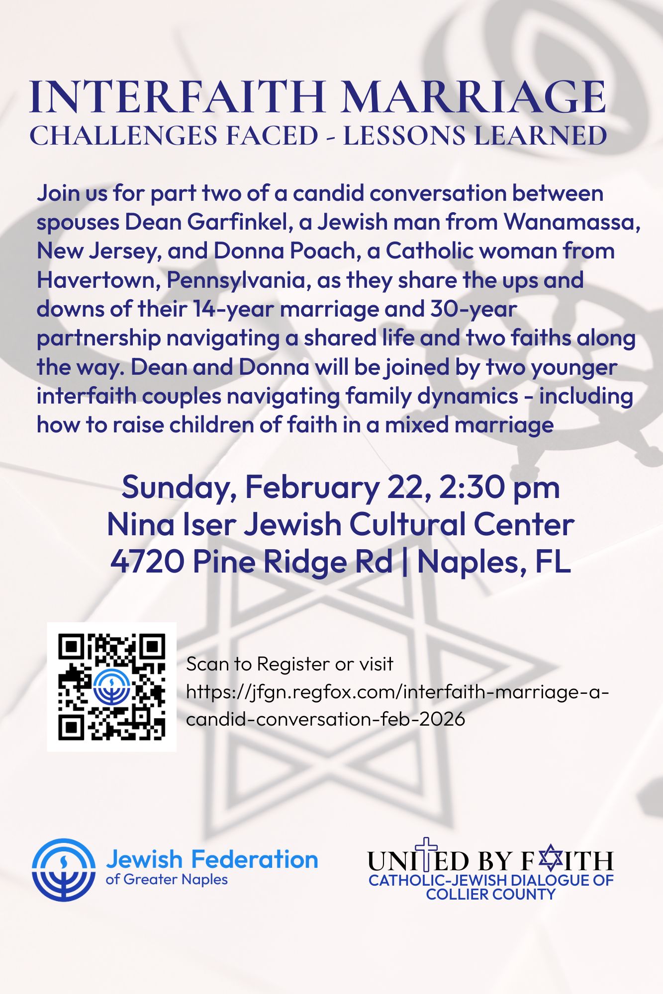 Join us for part two of a candid conversation between spouses Dean Garfinkel, a Jewish guy from Wanamassa, New Jersey, and Donna Poach, a Catholic girl from Havertown, Pennsylvania, as they share the ups and downs of their 14-year marriage and 30-year partnership navigating a shared life and two faiths along the way.