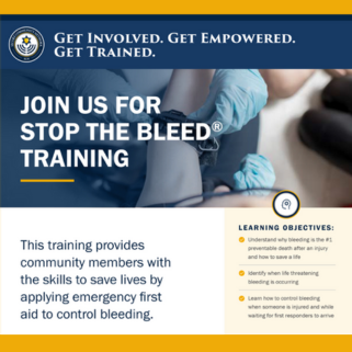 STOP THE BLEED® Training is a Nationally Recognized, standardized course created and sponsored