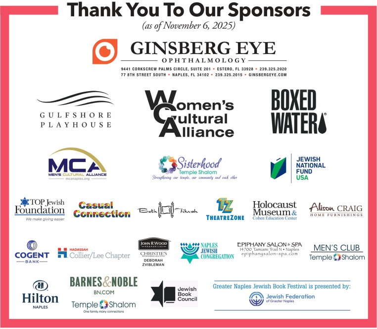Most authors appearing at the Greater Naples Jewish Book Festival are members of the Jewish Book Council Network.