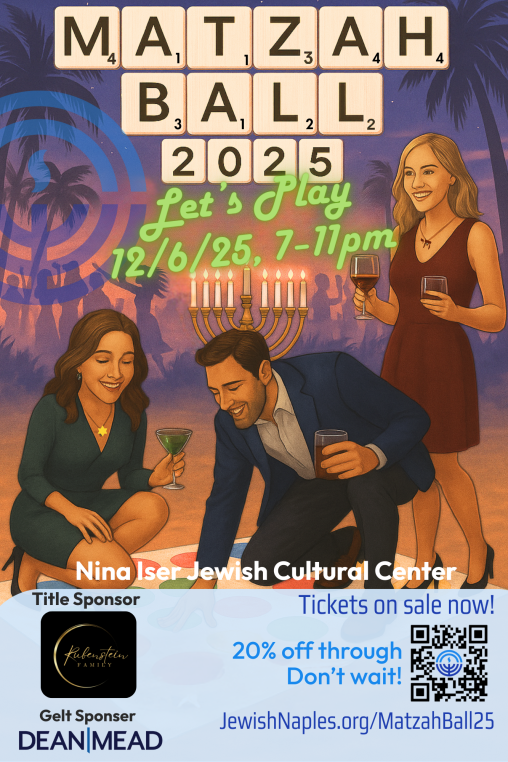 Join us for SWFL premier Jewish 55 and under event for married and singles. This year’s event will feature 80’s style with a Chanukah twist. Dance the night away with music by DJ Unek and delicious food and signature drinks by Chef Amber Phillips of Sage Events and Catering.